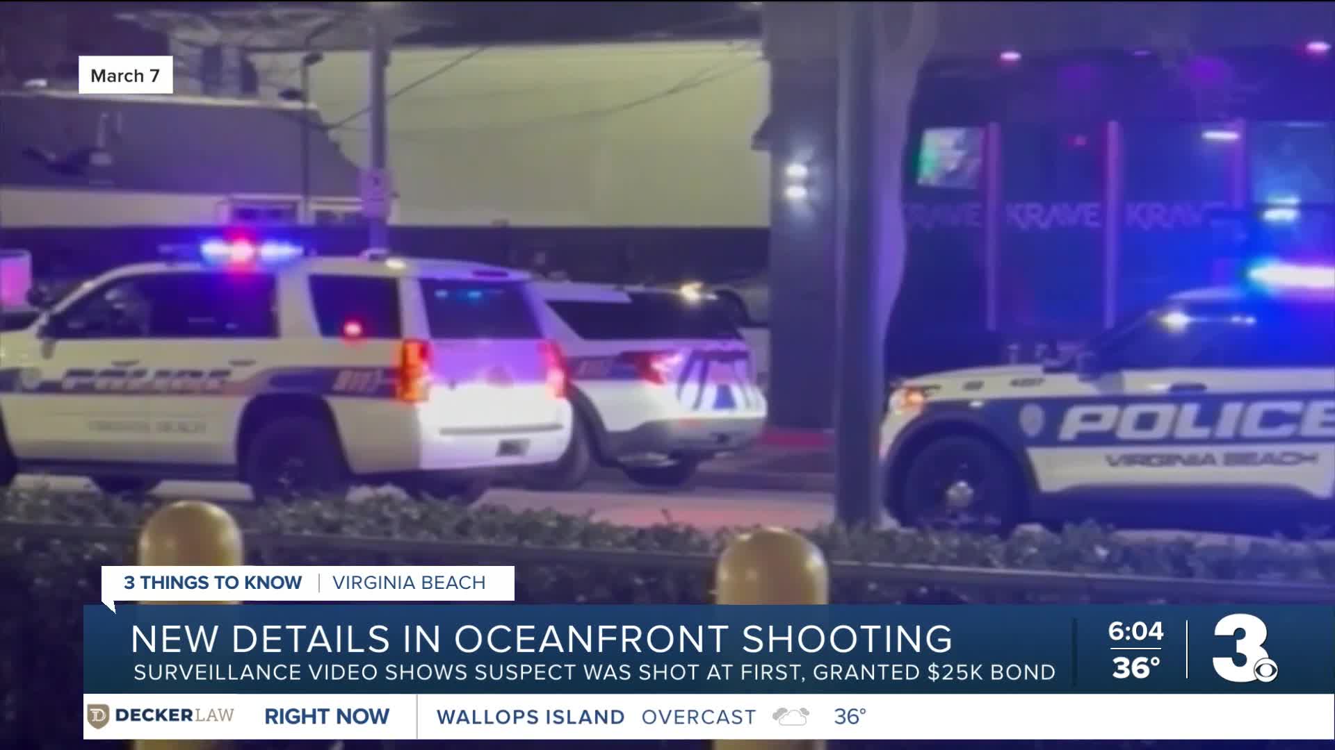 VBPD officers patrolling the Oceanfront heard shots fired around 9:50 p.m. Saturday, March 7 in the 1800 block of Atlantic Avenue. They found five people who had been shot: four men and one woman. Detectives later found a sixth victim at a local hospital. Their injuries were not life-threatening, police said.