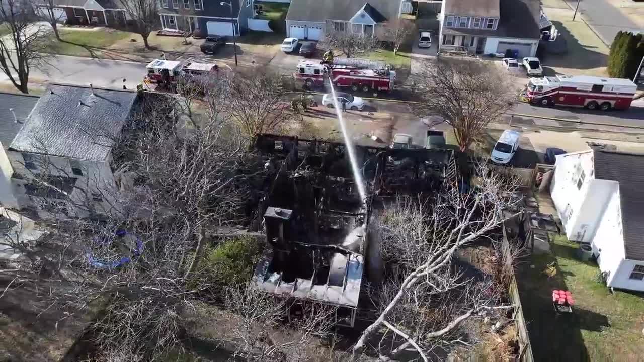 Video shared by VBFD Friday showed a house destroyed by the blaze and crews attacking it from the top.