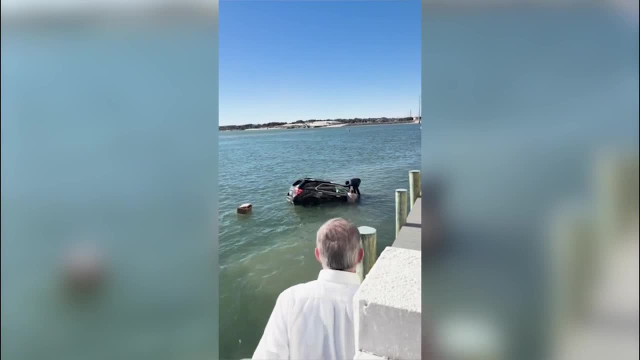 News 3's Colter Anstaett spoke with Jeremy Way, a U.S. Navy aviation rescue swimmer who was dining at the Back Deck when he saw the car go in the water.