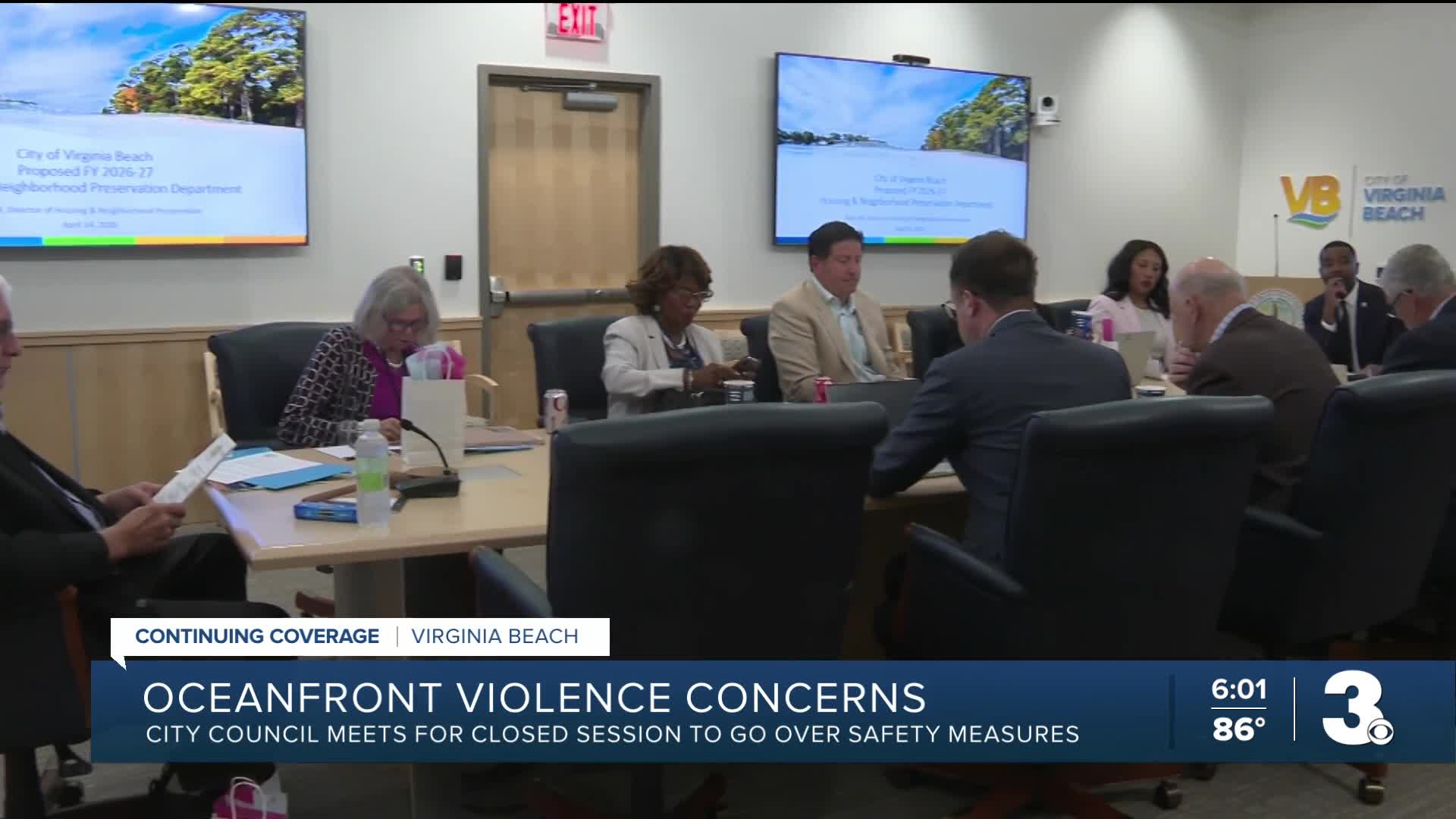 VIRGINIA BEACH, Va. — City leaders met in closed session Tuesday to discuss potential solutions to gun violence at the Virginia Beach Oceanfrontfollowing a weekend shooting that injured eight people after a fight between two groups who did not know each other, according to court documents.