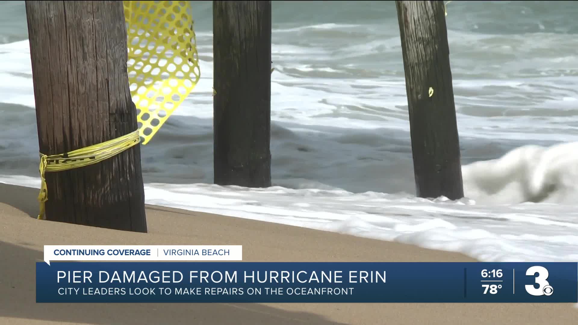 VIRGINIA BEACH, Va. — A portion of the Virginia Beach Fishing Pier will be barricaded off as crews work to repair a pile section that broke due to Hurricane Erin's passing, according to Harmonia Contracting Corp.