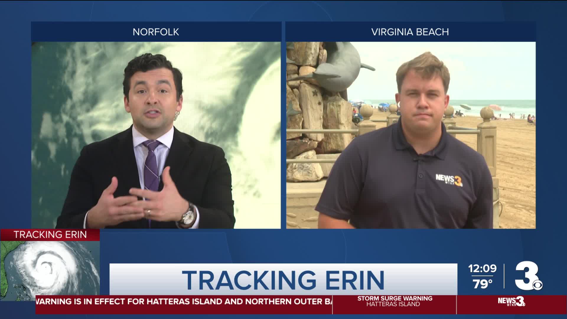 VIRGINIA BEACH, Va. — Virginia Beach city leaders are holding a press conference Wednesday to discuss their preparations ahead of Hurricane Erin's expected brush past the east coast.