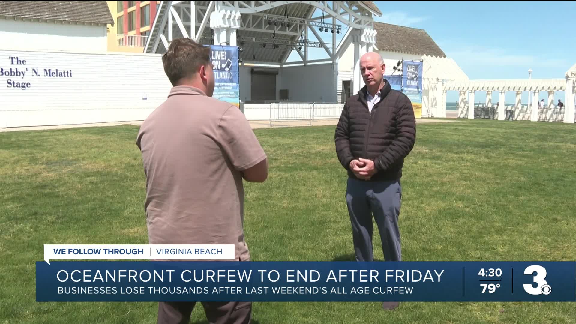 VIRGINIA BEACH, Va. — The last night of the 9:30 p.m. curfew at the Virginia Beach Oceanfront is scheduled for Friday, despite one city leader’s efforts to have it lifted.