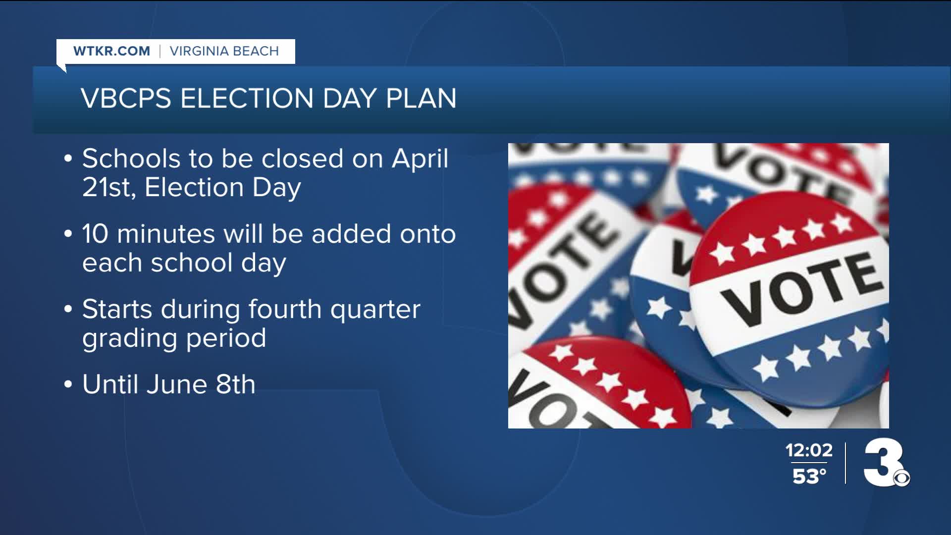 In Chesapeake, the school board voted to make classes asynchronous on April 21. Board members also cited security concerns in this decision. 17 Chesapeake schools will serve as polling locations.