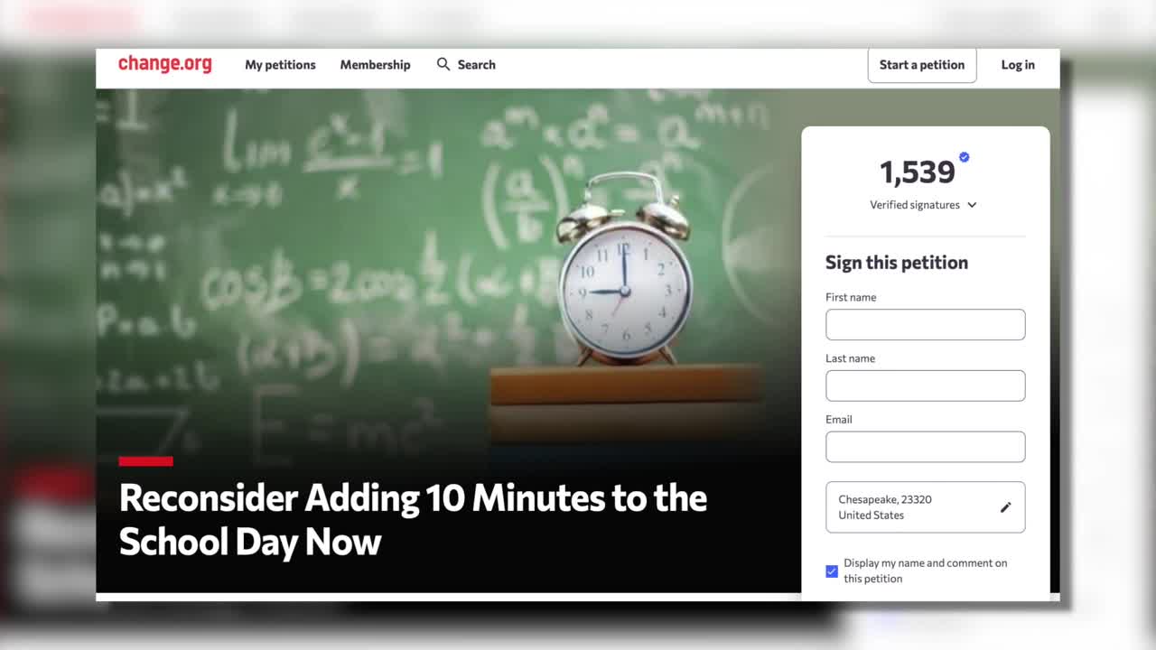 Beginning that day, 10 minutes will be added to each school day through June 8 to make up for a planned closure April 21 for a special election. The change has drawn criticism from teachers and parents who say it creates scheduling challenges and added stress late in the school year.