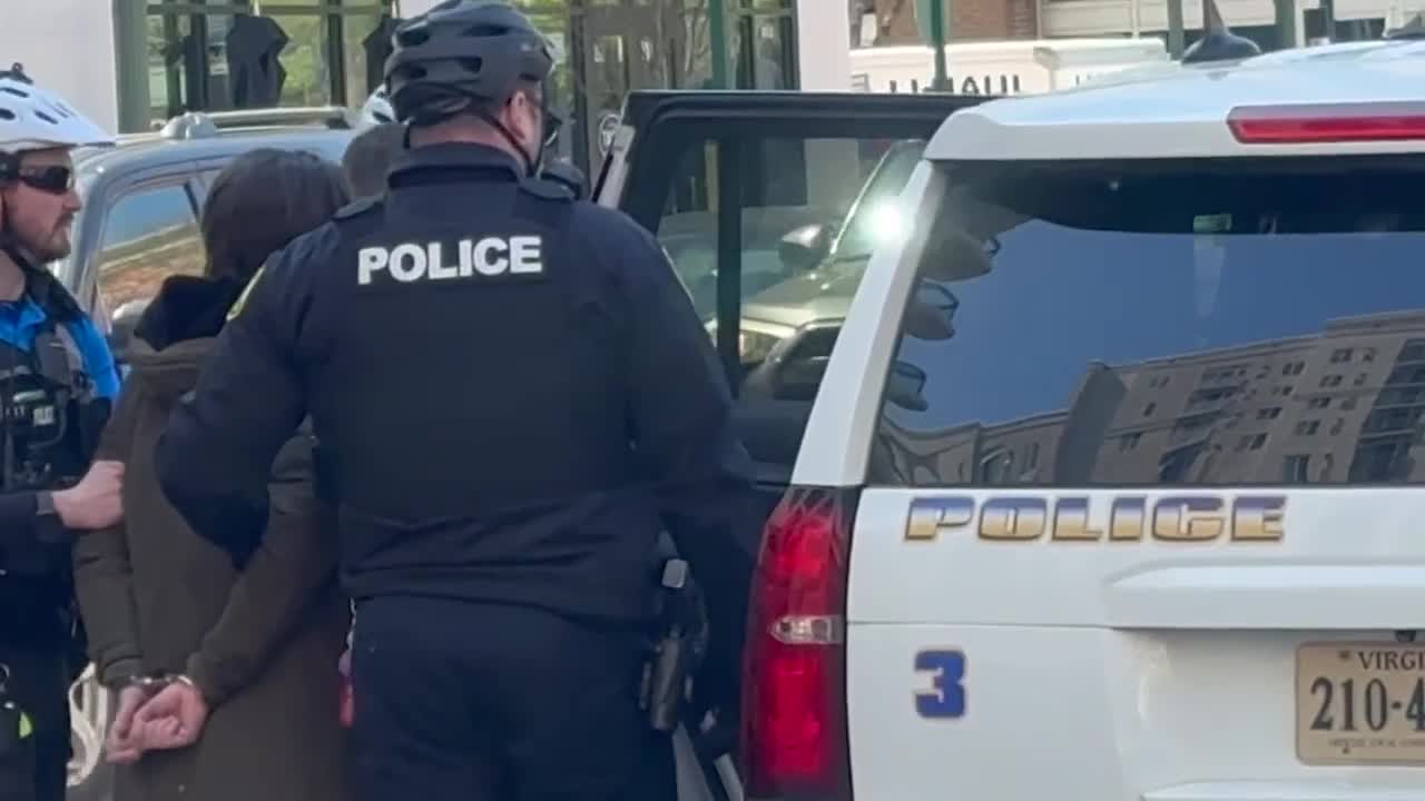 VIRGINIA BEACH, Va. — A woman was arrested at the "No Kings" rally held in Town Center on Saturday, according to Virginia Beach police.