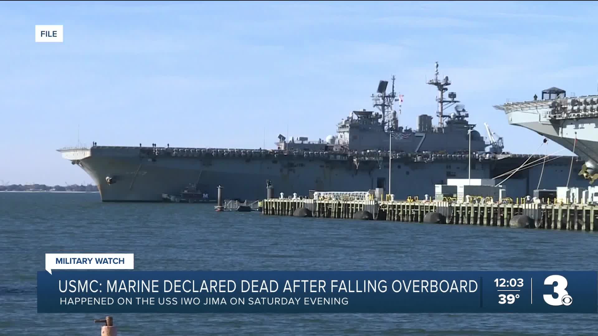 The death of a Marine — who was reported to have fallen overboard off the Norfolk-based USS Iwo Jima (LHD 7) — was announced by the Iwo Jima Amphibious Ready Group and the 22nd Marine Expeditionary Unit (Special Operations Capable) on Thursday.