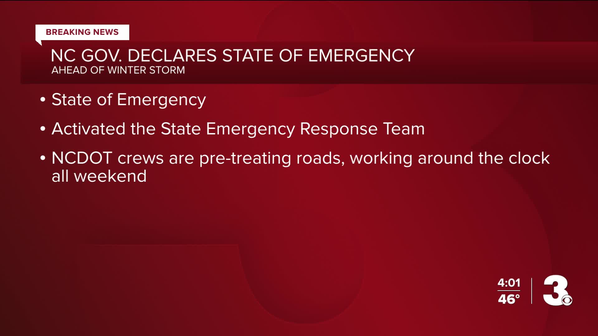 RALEIGH, N.C. — North Carolina Gov. Josh Stein declared a State of Emergency on Wednesday ahead of the predicted winter storm this weekend.