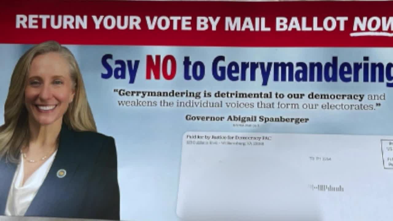 NORFOLK, Va. — One of the fliers circulating ahead of Virginia's redistricting referendum shows Gov. Abigail Spanberger and encourages people to vote no — even though she supports the effort.