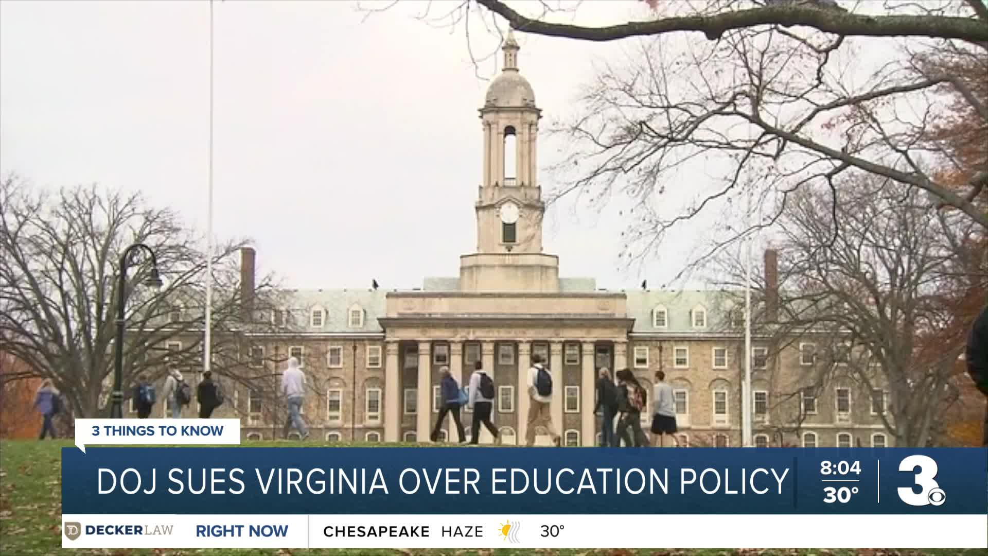 The U.S. Department of Justice is suing Virginia over laws it says require public colleges and universities to offer in-state tuition rates to students who establish Virginia residency, regardless of their immigration status.