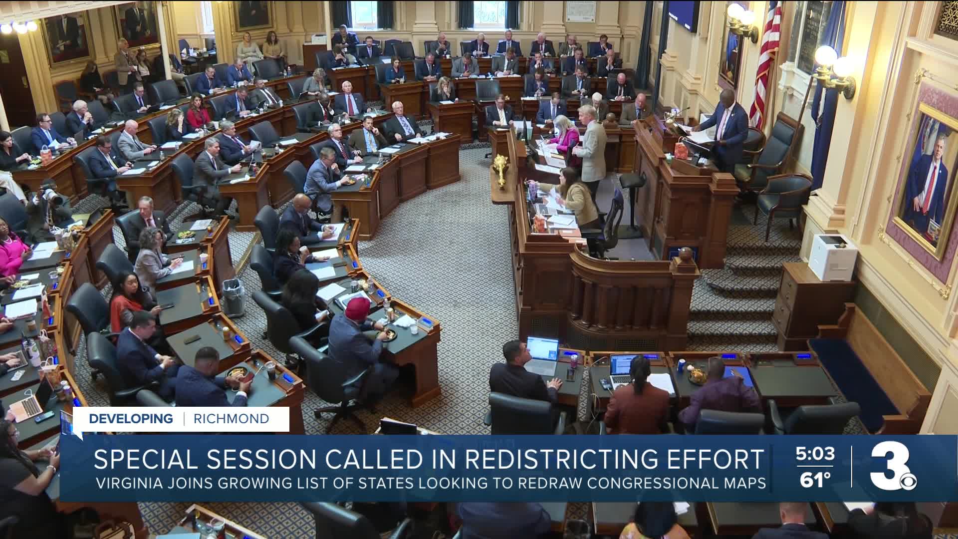 News 3's Colter Anstaett reports from Richmond that language for a constitutional amendment is expected to be introduced in the House and Senate. Then, a hearing would be held on the House floor, followed by more hearings Tuesday.
