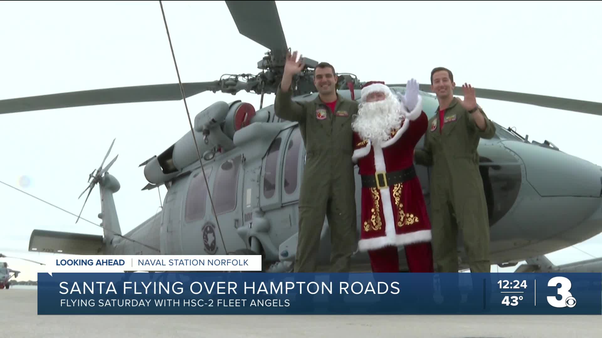 The "Fleet Angels" of Helicopter Sea Combat Squadron (HSC-2), based at Naval Station Norfolk, will escort Santa Claus as he flies over Hampton Roads from 10 a.m. to noon. The North Pole-native will be taking a ride in a Sikorsky MH-60S Knighthawk helicopter.