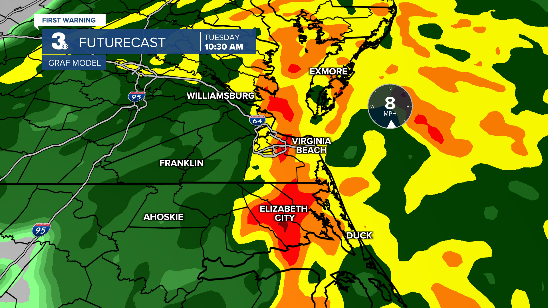 First Warning Forecast: Soggy Tuesday with heavy rain at times
