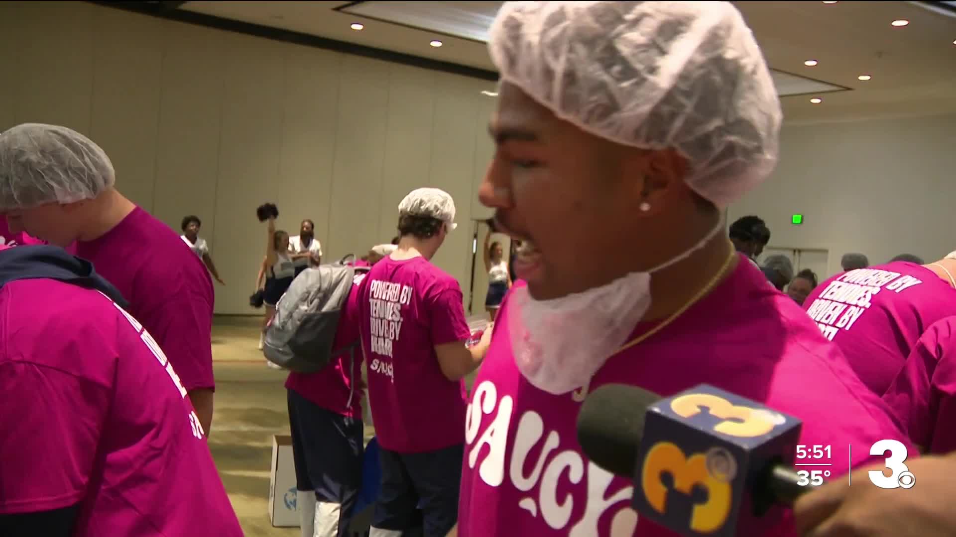 "It means a lot," wide receiver Tre Brown said. "Everyone's coming together as one and we're doing this for other people that need help."