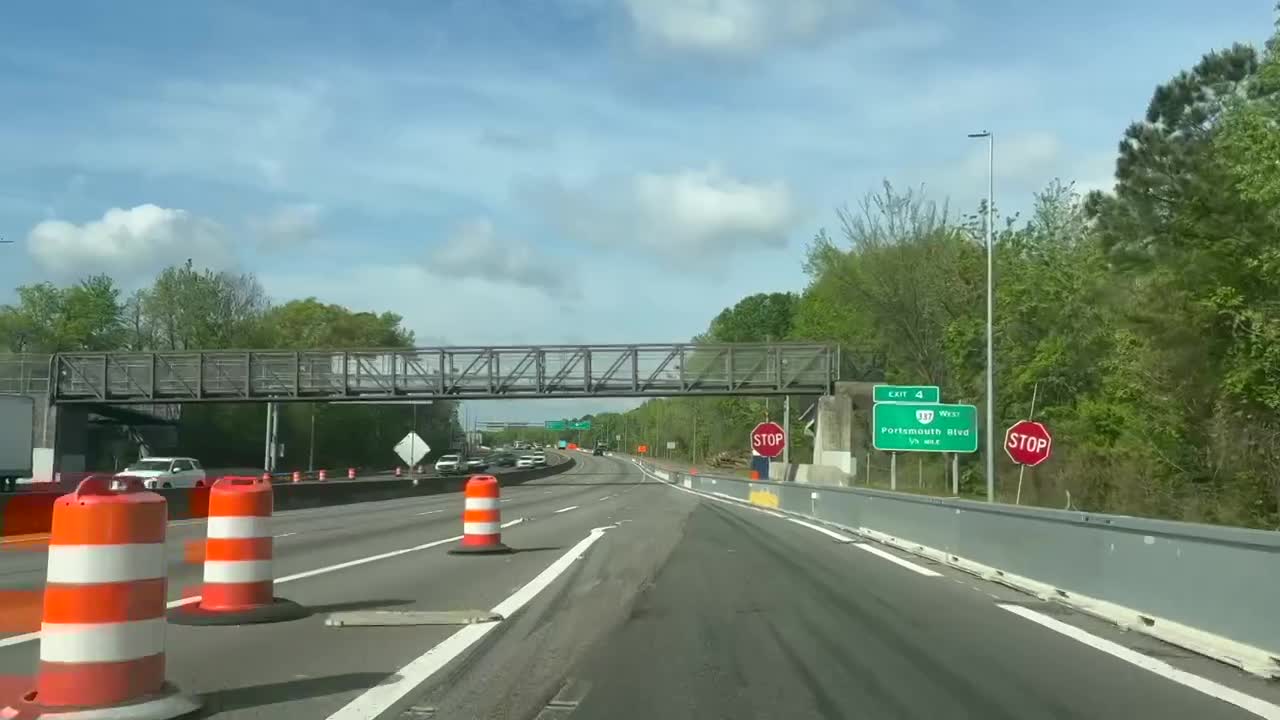 The traffic change is part of a more than $30 million project to install about nine sound walls along I-264 in Portsmouth. Because crews need to be able to work in the highway shoulders, the merge space for vehicles entering the interstate was significantly reduced.