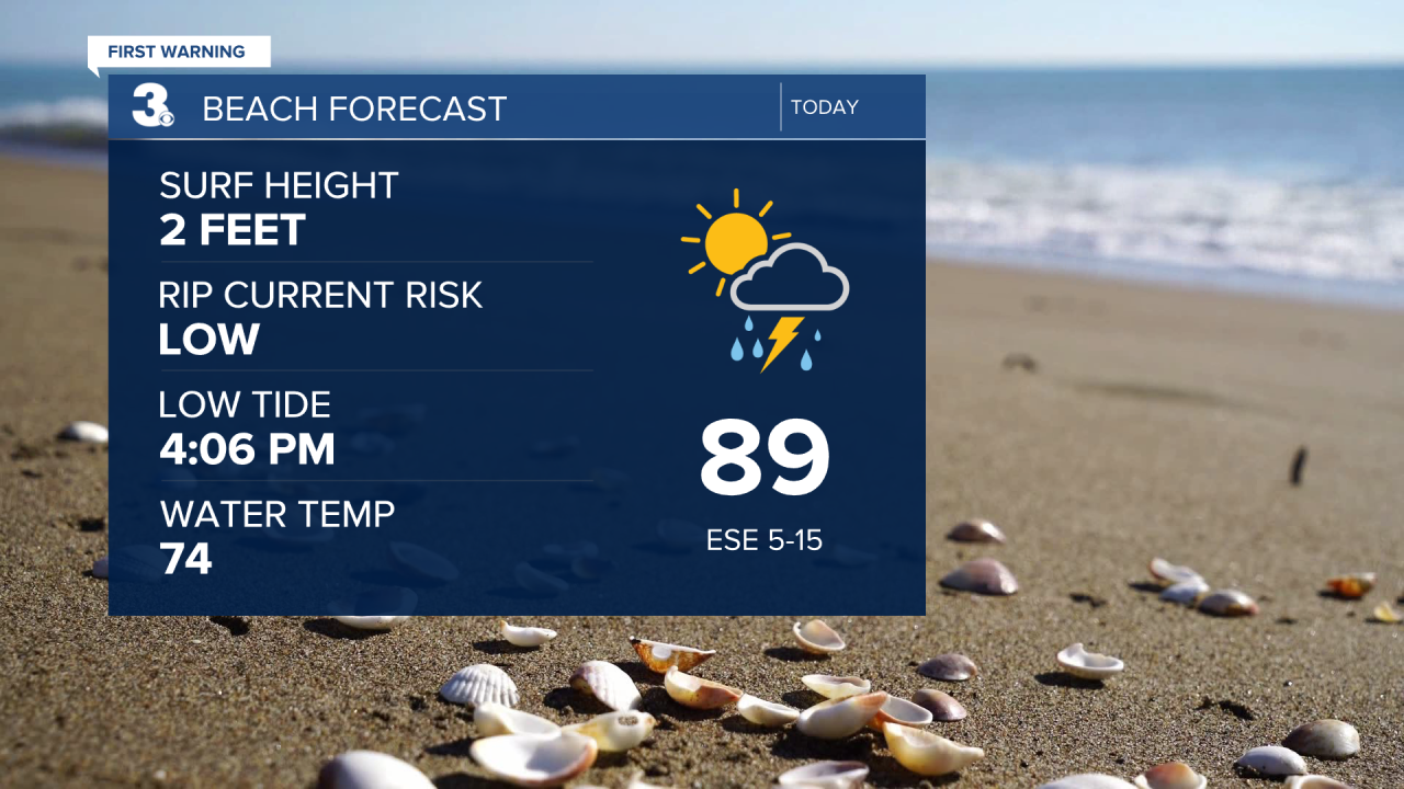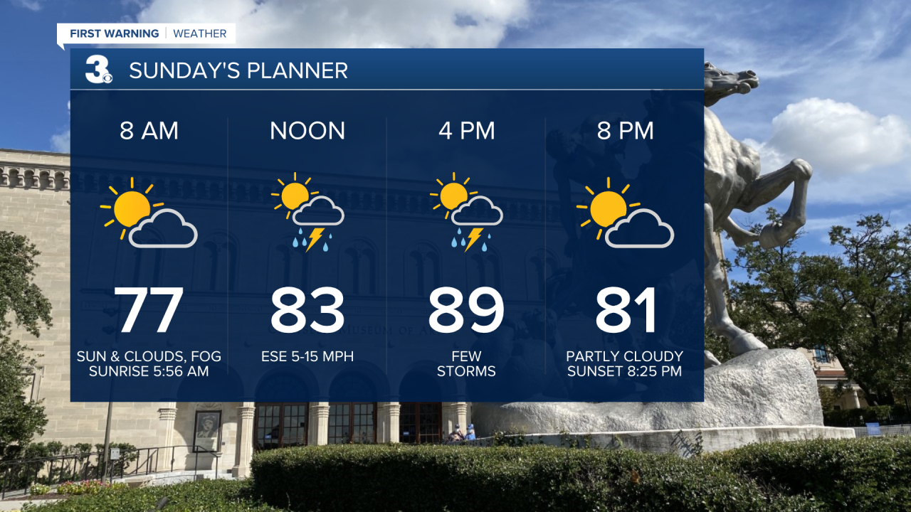 I am looking for a 30% chance of showers & storms on Sunday with highs in the upper 80s. The "feels like" temperatures on Sunday should peak in the upper 90s.