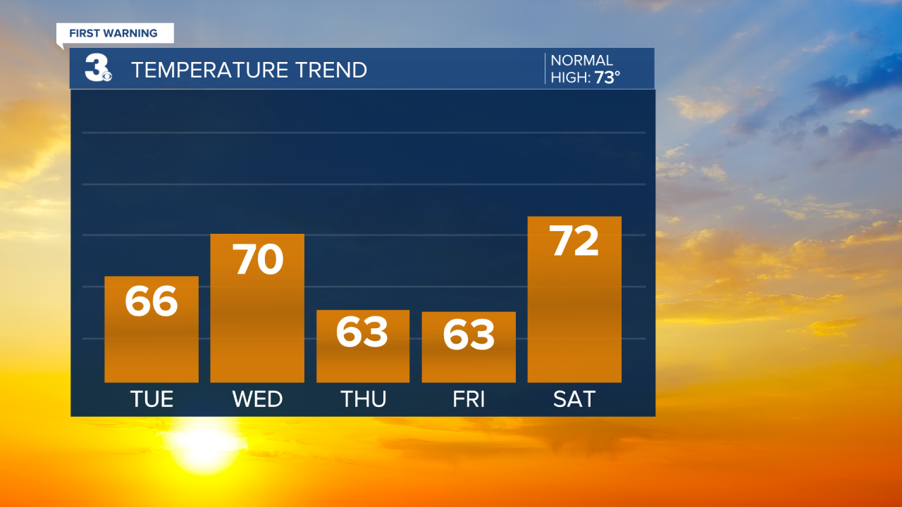 Sunshine will return on Wednesday with some cooler nights ahead.