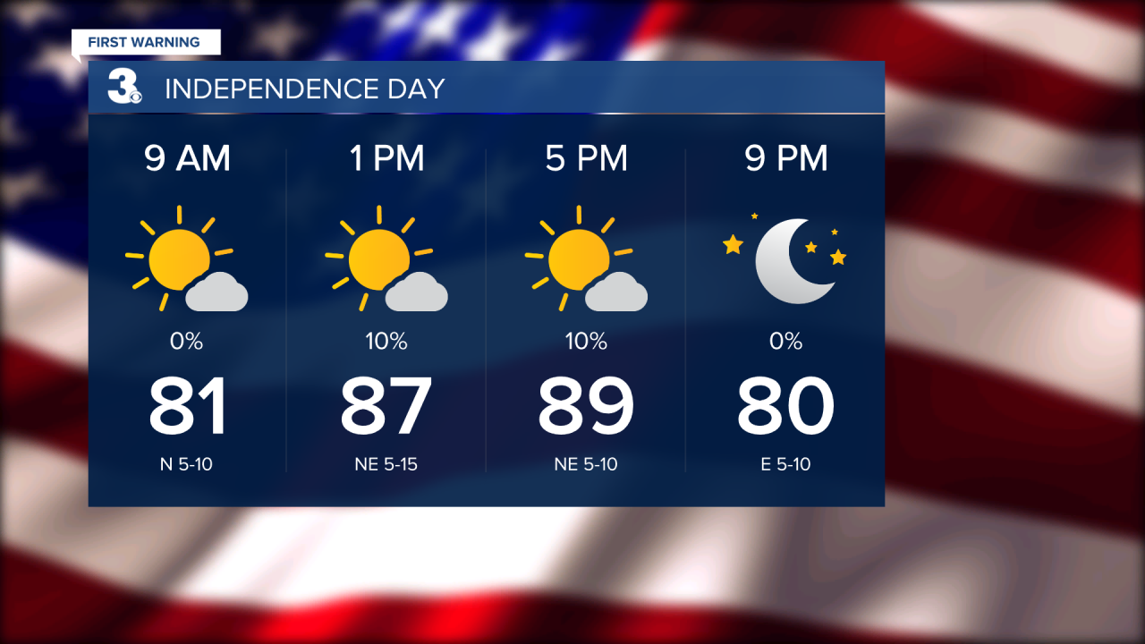 Tired of the humidity? Good news, it will drop on Independence Day, causing the comfort level to improve. Look for both the 4th of July and Saturday, the 5th, as great days across Hampton Roads and Northeast North Carolina.