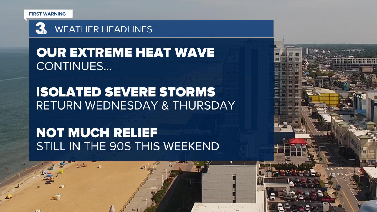 Our extreme heat wave continues with more triple digit "feels like" temperatures on the way. The National Weather Service in Wakefield keeps our Extreme Heat Warning in effect to at least 8 PM Wednesday. For a cooling location, consider visiting your local library, grocery store, shopping mall or even a movie theater.