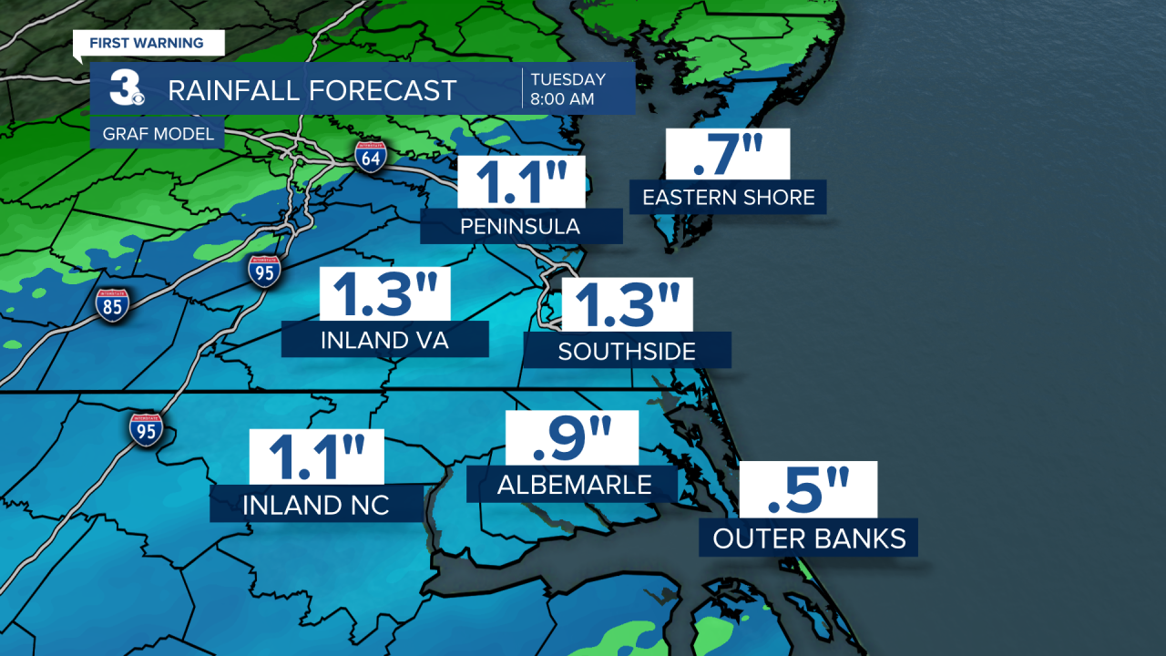 That means if you live away from Norfolk & Virginia Beach and reside in Inland VA, for example, you could get temperatures dropping into the upper 20s and lower 30s. This frosty start for many would require you to "cover up" your plants or bring them in all together.