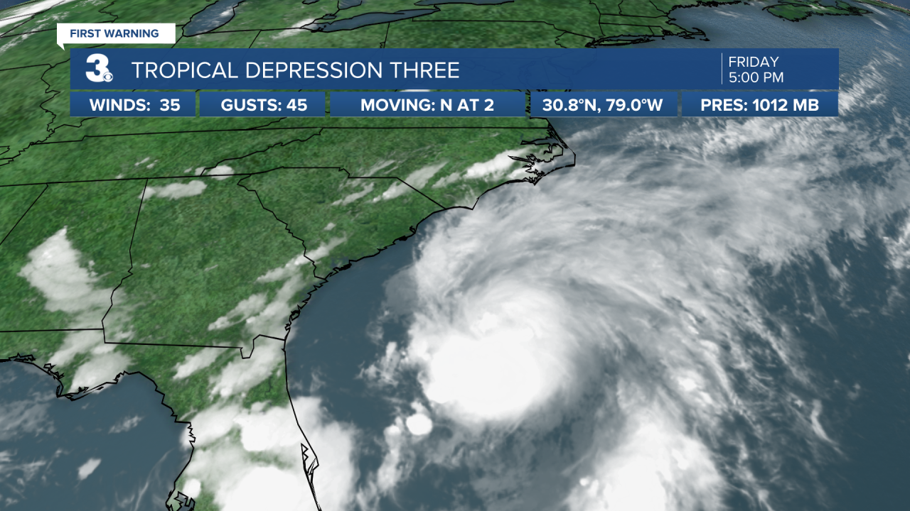 Happy Independence Day! Enjoy a dry night for fireworks. The holiday weekend will not end the same way that it starts. With plenty of sunshine, expect a few spotty showers & storms to develop on Saturday, which will come up from the South. A 60% chance of showers and storms will be possible on Sunday, as our soon-to-be 3rd named storm crawls up the coast. Tropical Depression # 3 should soon be named "Chantal."