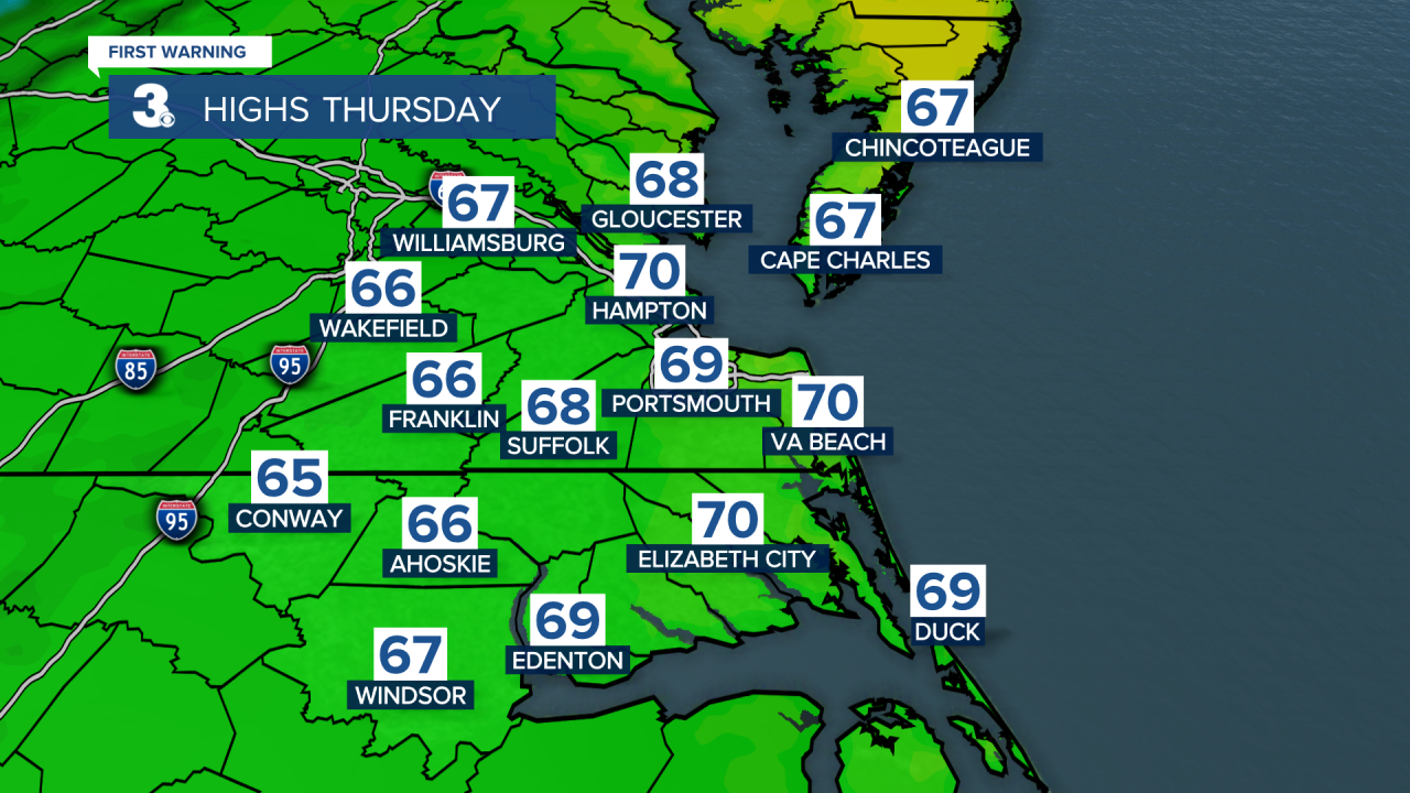 Saturday should be mostly sunny as well with highs in the lower 60s.