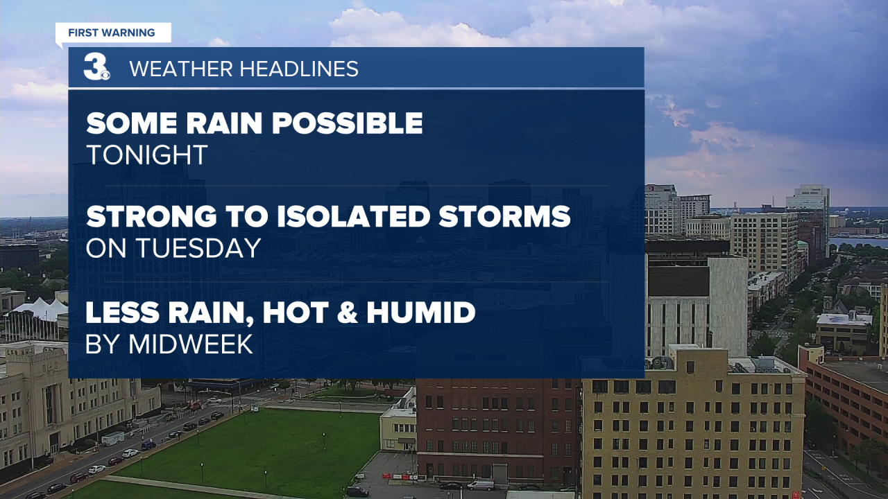 Strong to isolated severe storms possible on Tuesday with showers & storms possible in the morning, then a break and then more development with the heating of the day.