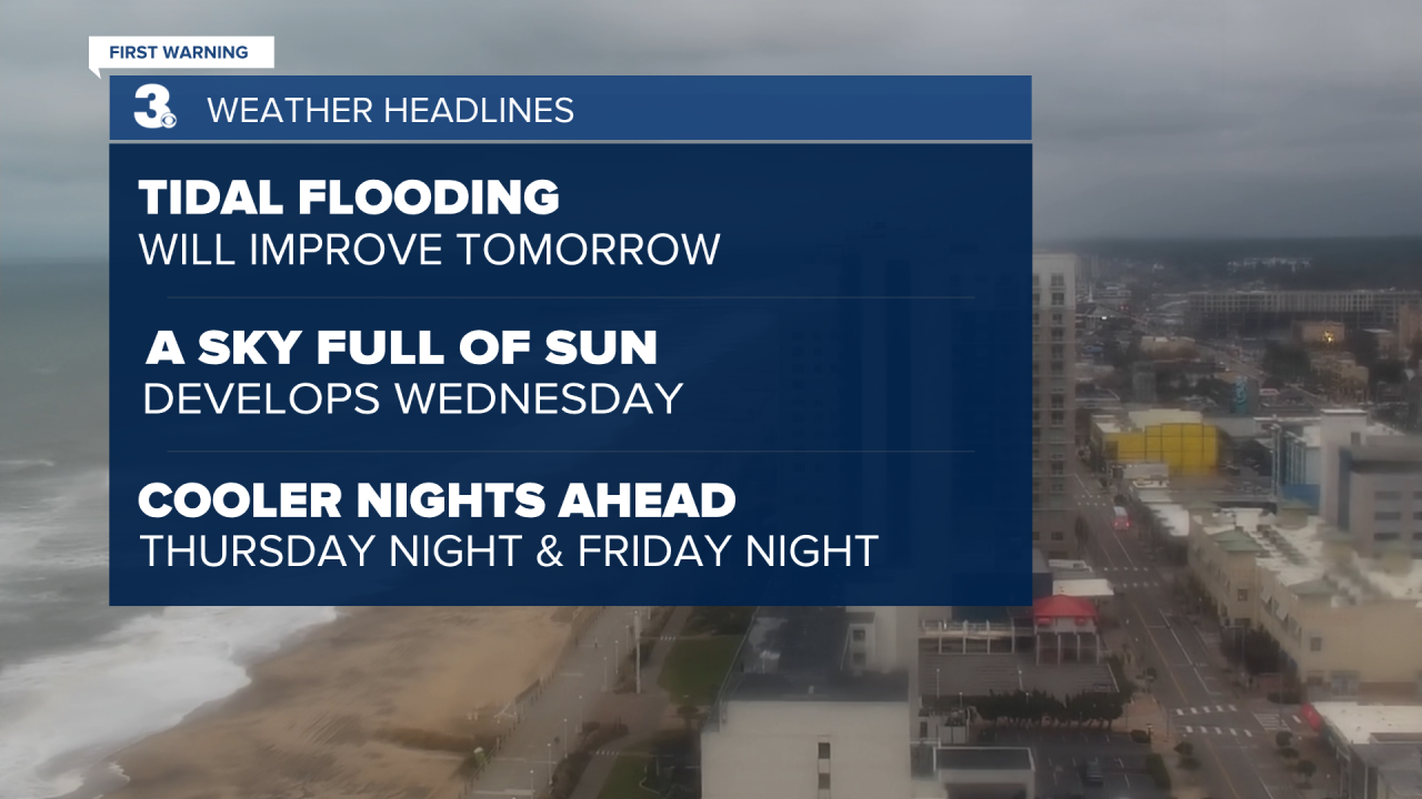 On Wednesday, we will turn a corner in a good way with developing sunshine from West to East. Expect highs on Wednesday to be near 70 degrees.