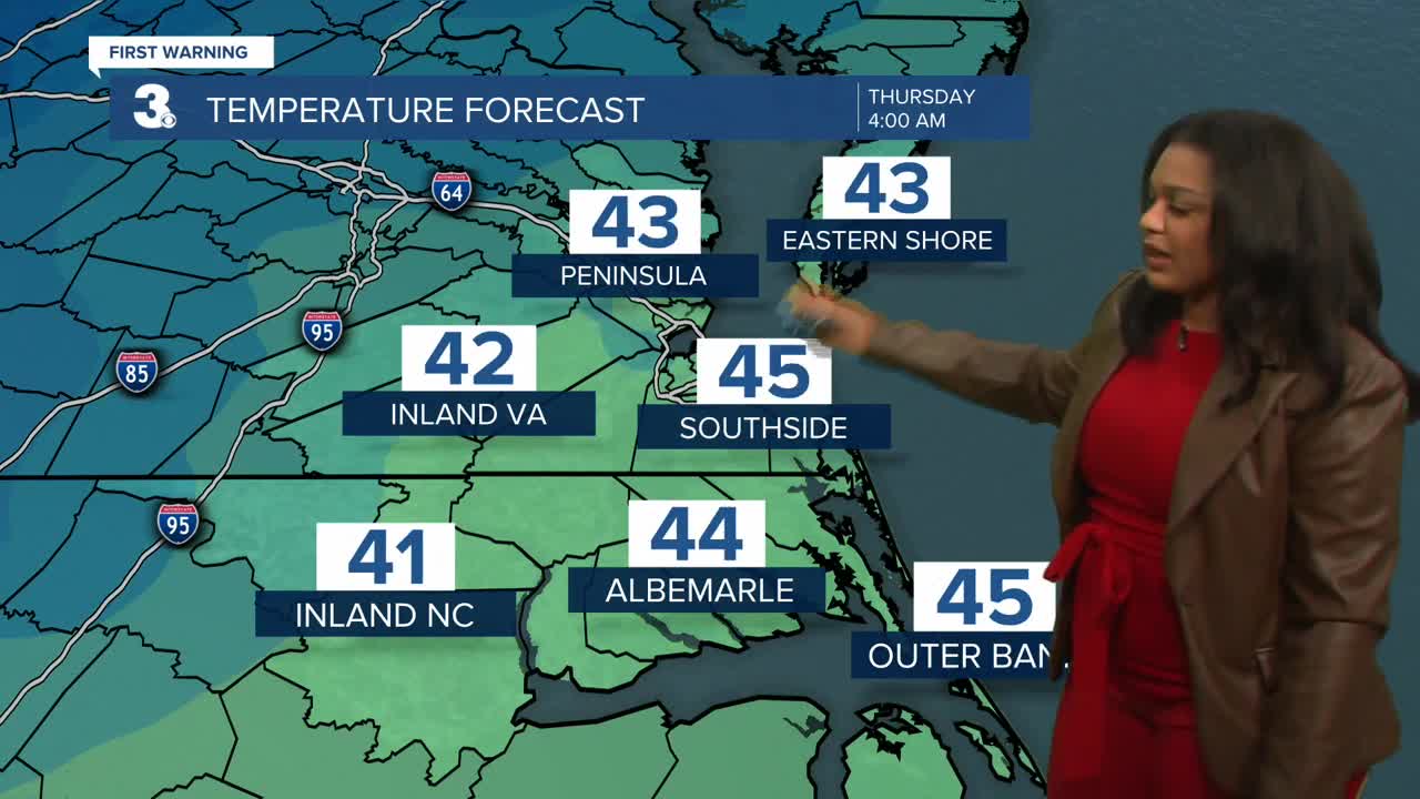 Highs struggle to reach 40 degrees on Thursday. Skies clear out by the afternoon. The day will be breezy with winds gusting up to 25 mph.