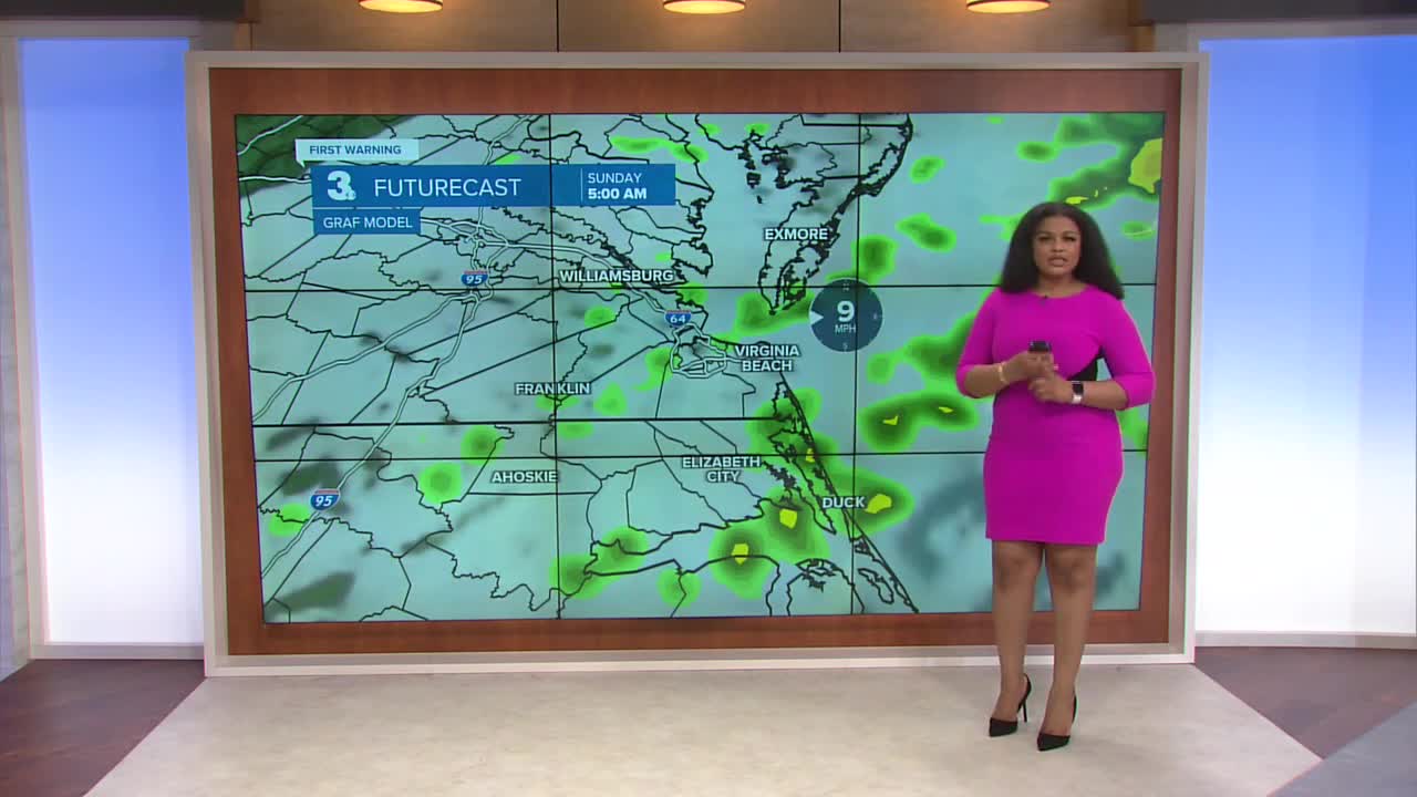 Sunday will be an upside-down day. The warmest air will come in the morning as temperatures fall throughout the day. We will start out in the 50s and 60s and land in the 40s by the afternoon. Skies clear throughout the day. Winds pick up once the rain clears out with gusts 35-40 mph possible.