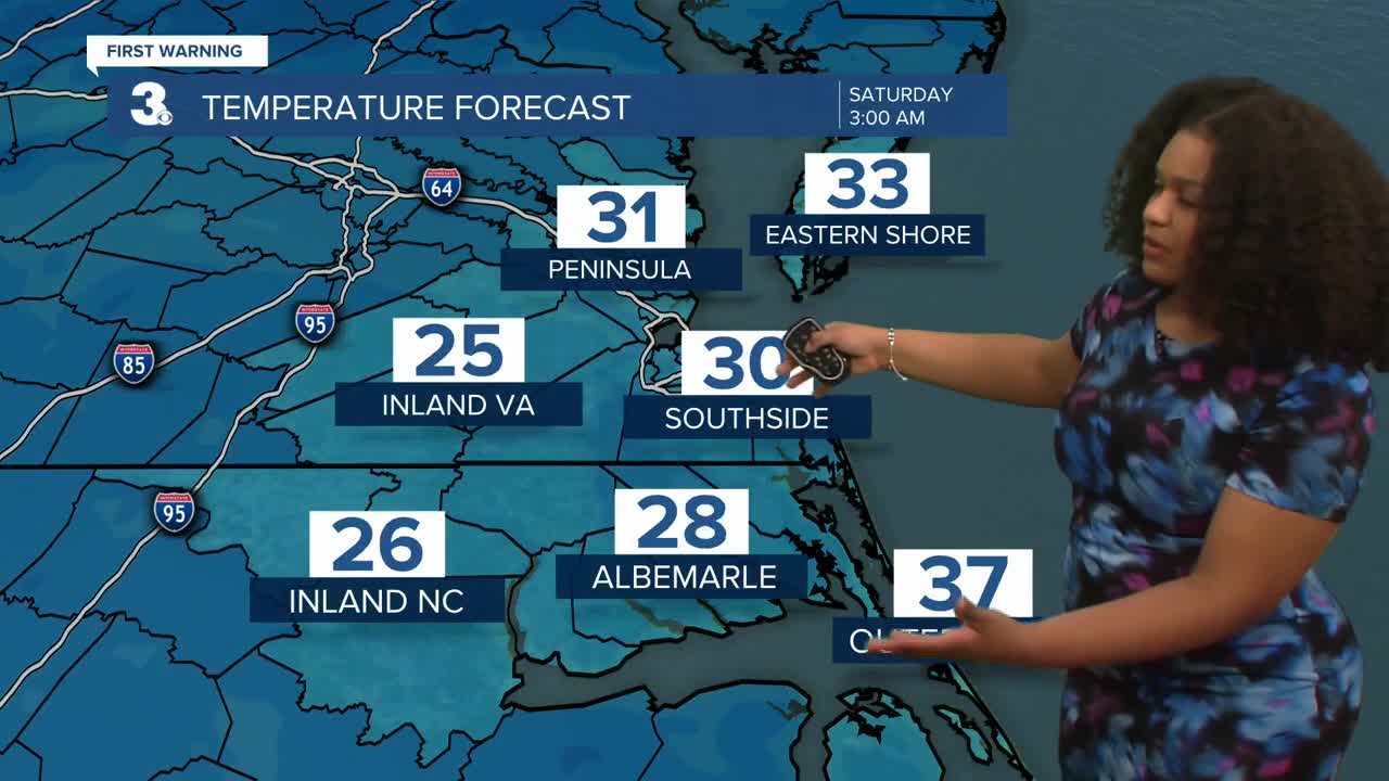 Saturday will be bright and sunny with highs in the upper 40s.On Sunday, winter officially begins. Highs reach near 60, but a cold front moves through pushing highs back into the 40s early next week.