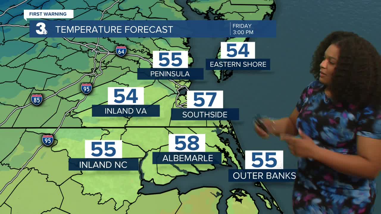 Highs will reach the mid 60s in the morning but fall throughout the rest of the day. By the afternoon, we’ll be in the upper 40s. Skies clear out and will be mostly clear tonight with lows in the 30s.