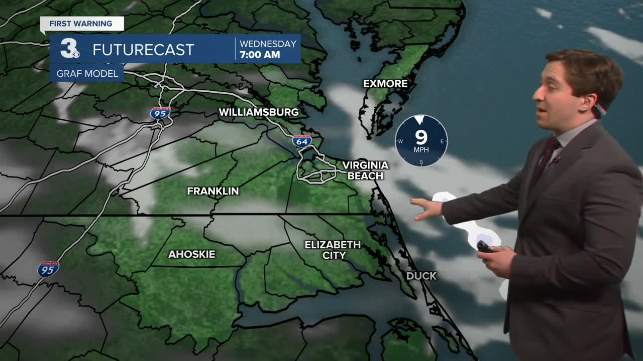 This evening our winds will drop off, and temperatures will fall into the 20s and teens overnight. Winds will fall to 5-10 mph, with some clouds moving in. A stray flurry is possible. Another Cold Weather Advisory is in effect tonight for the Eastern Shore and Middle Peninsula.