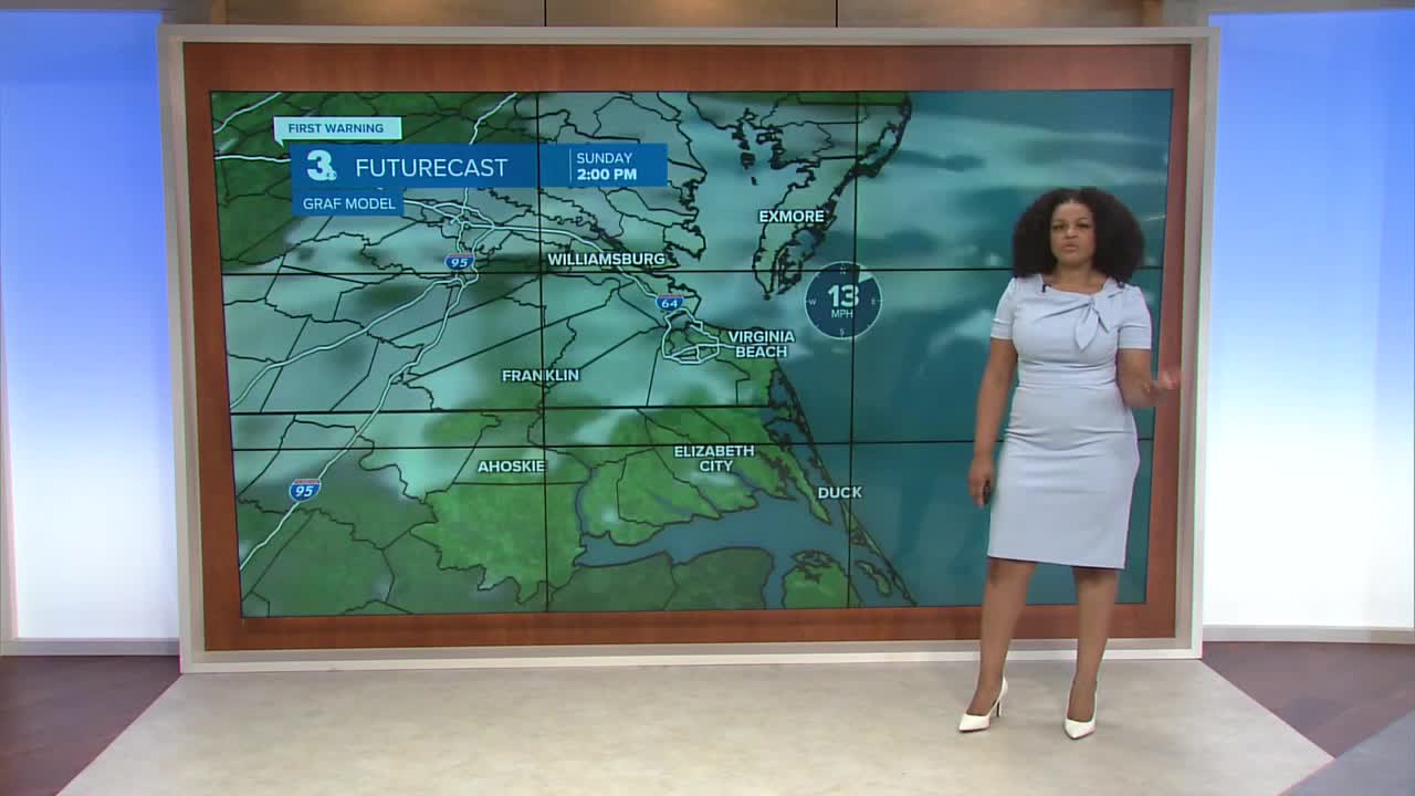 A few more clouds build in Saturday morning. A few stray showers will be possible but most locations will remain dry. Highs are forecast to reach the upper 70s.