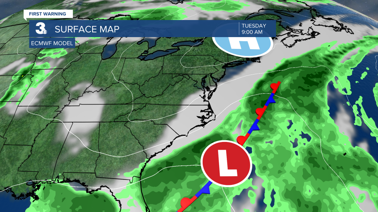 Tomorrow will be mainly dry with partly cloudy skies expected. Highs will stay below normal in the mid 70s, with breezy conditions out of the NE at 10-20 mph, gusting to 25 mph at times. There is a 10% chance of a stray shower, along with dew points falling into the upper 50s. Clouds will start to fill in overnight Monday into Tuesday as a coastal tries to develop offshore, with mostly cloudy skies expected throughout the day on Tuesday. Highs will stay in the mid 70s along with breezy conditions out of the NE at 15-20 mph, gusting to 30 mph at times. We'll see mainly dry conditions, with a 20% chance of a stray shower or storm.