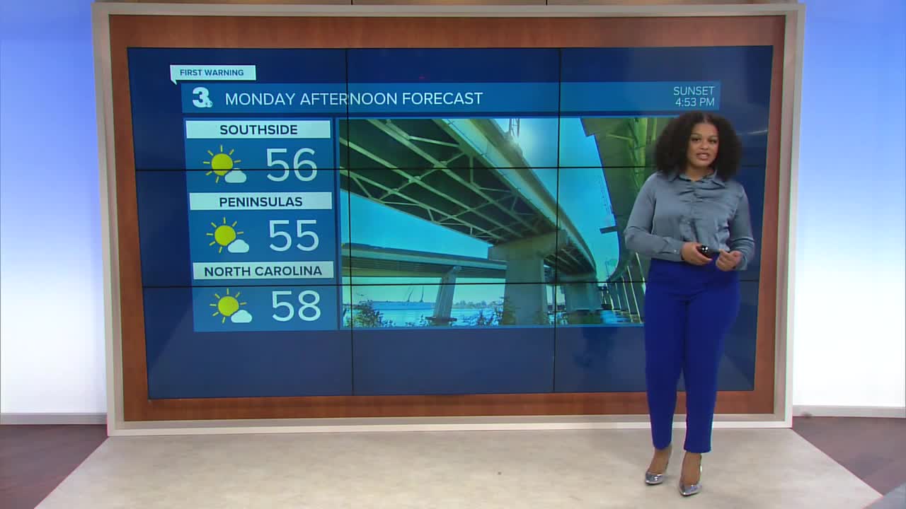 Lows Monday will be in the mid 30s to low 40s. Plenty of sunshine will be around all day long. Highs will struggle to reach 60 degrees.