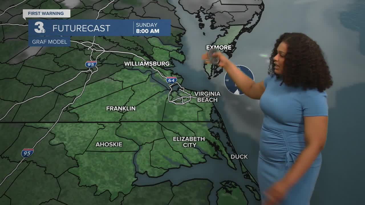 Another cold front brings the chance of showers late in the week. Some areas in northern Accomack County and the Peninsulas could see some mixed precipitation next Saturday.