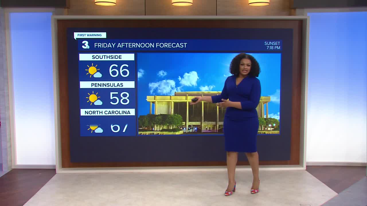 Friday will be partly cloudy with highs in the 60s and 70s. Some isolated showers and storms will be possible Friday night.
