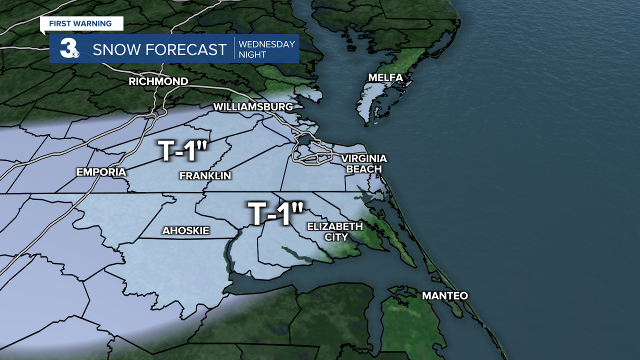 Overnight temperatures will drop into the upper 20s to around 30 as rain/snow mix turns to light snow. A glaze of freezing rain is also possible inland as temps cool off overnight. Accumulations will be minimal, with a trace to an inch of snow expected. A few isolated amounts of 1-2" of snow are possible away from the coastline. Snow ends before sunrise on Thursday.