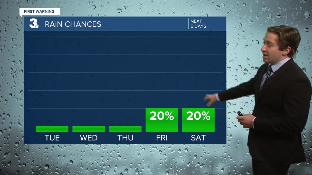 This weekend will be warm, with high temperatures climbing into the 70s both days with a chance of rain increasing into Sunday. As we head into Monday and Tuesday, temperatures take a free fall into the 50s and 40s for highs!