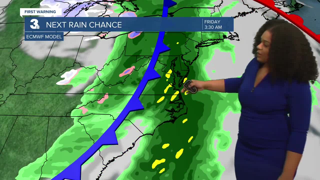 Much of Thursday will be dry. Highs are expected to touch 60. Widespread rain moves in on Thursday night. Downpours will be heavy at times,and winds could gust up to around 35 mph.