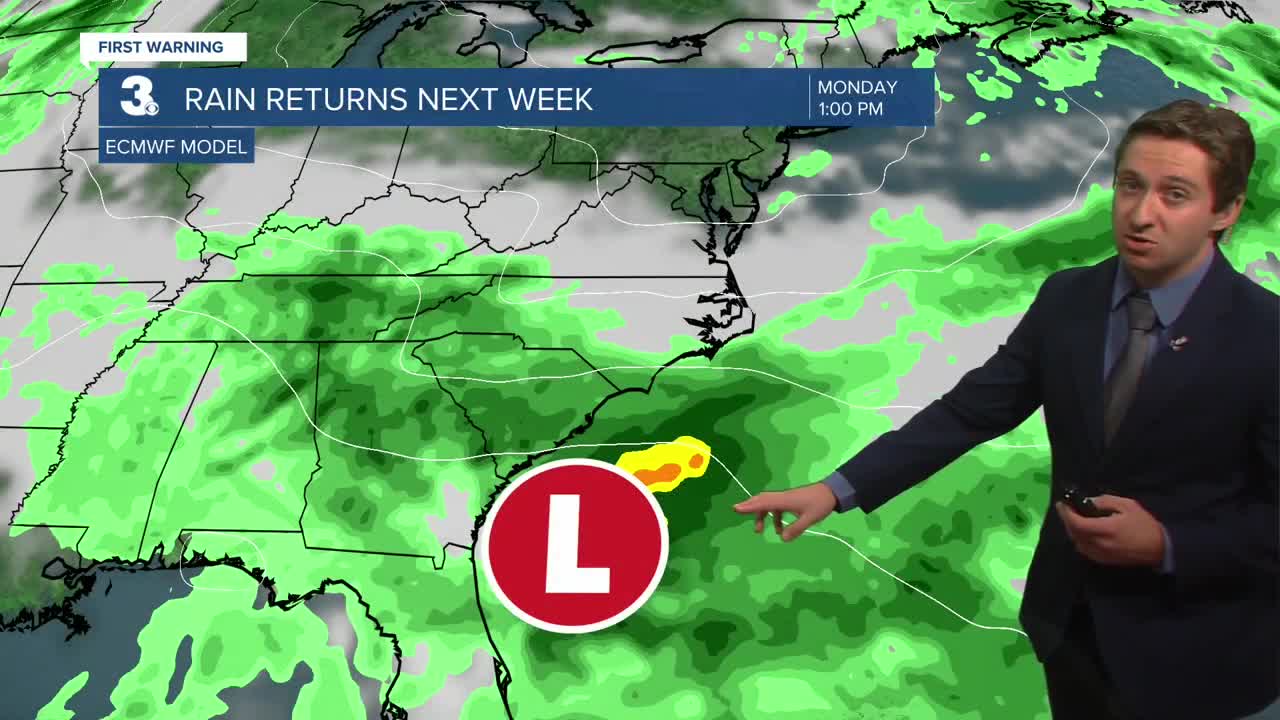 Showers are more likely to move in by Tuesday and Wednesday, with rain and wind expected along with high temperatures staying cool in the upper 50s and low 60s. Winds will be out of the NE at 15-25 mph, at times gusting up to 35 mph. Around 1-2 inches of rain is expected through Thursday, before calmer weather finally returns by Friday (In time for Halloween!).