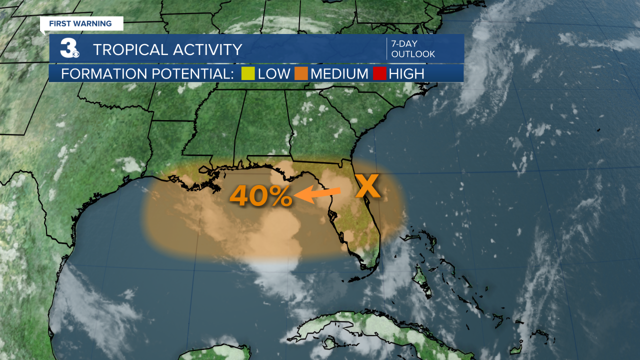 An area of low pressure is producing disorganized showers and thunderstorms across the Florida Peninsula. It is forecast to move into the Gulf. It has a 40% of tropical formation within the next week.