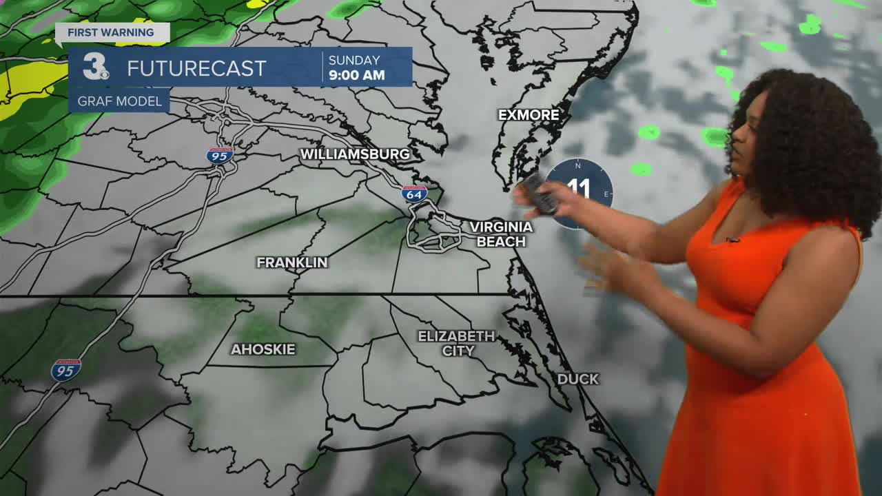 We’ll see plenty of sunshine on Saturday with mainly sunny, dry and warm conditions. Highs will be in the mid 80s.