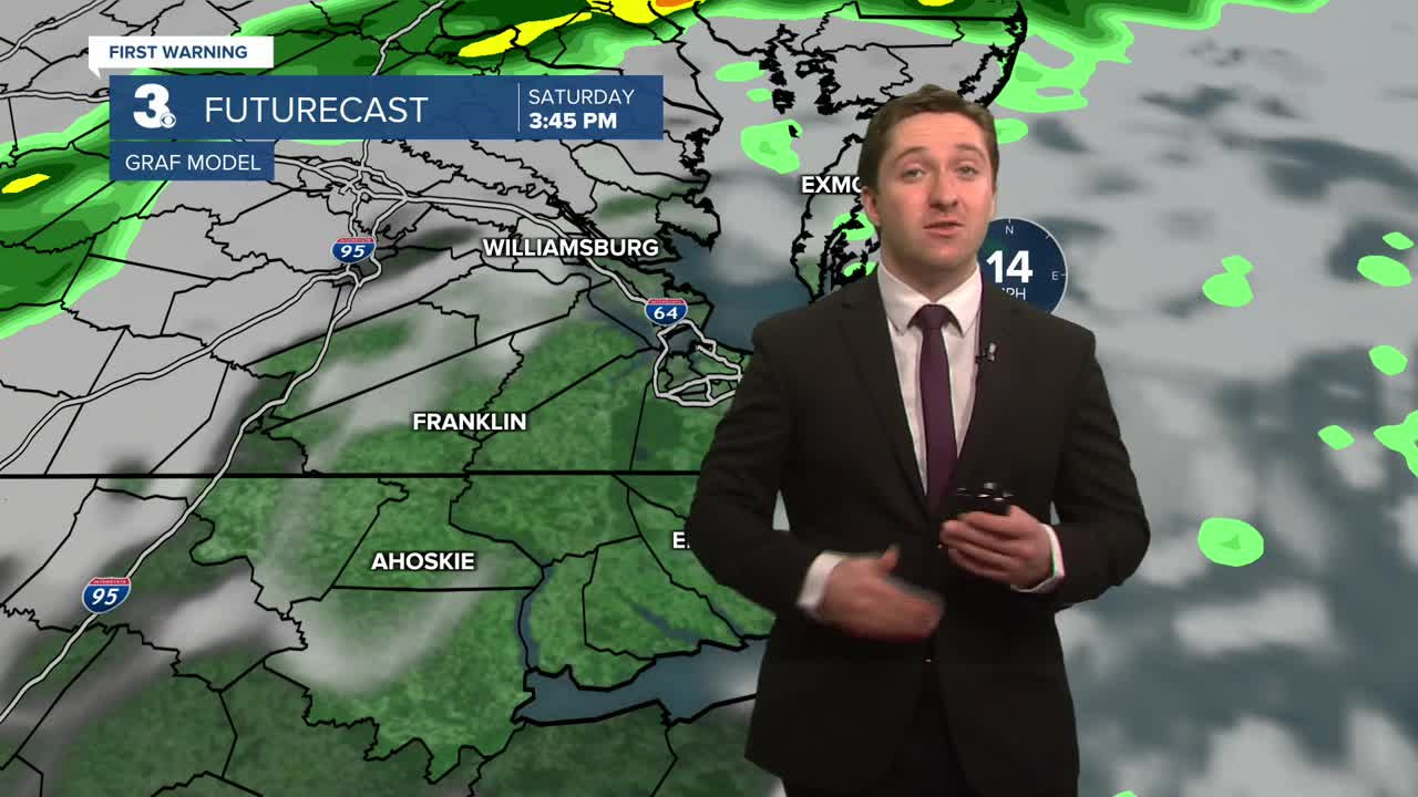 Today will start off cloudy with rain on the Peninsulas and Eastern Shore along with patchy fog. Rain will push north during the morning, with partly sunny skies during the afternoon. Record warmth is expected, with high temperatures reaching the low to mid 70s. Winds will pick up during the afternoon, out of the S at 10-20 mph. Overnight, another round of showers and isolated thunderstorms are expected after midnight.