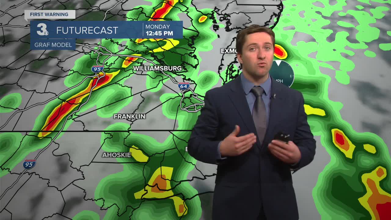 There is a level 3/5 severe weather threat on Monday. Numerous strong to severe storms will be possible. Damaging wind gusts and isolated tornadoes are our main concerns. The strongest storms will be in the afternoon and evening.