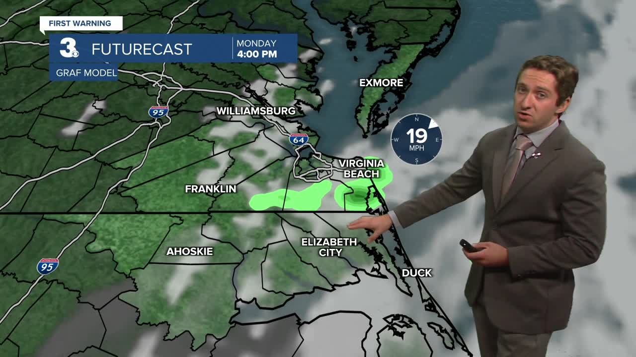 Look for a mix of clouds today with highs in the mid 70s, below normal for this time of year. It will be windy today with a NE wind at 10 to 20 mph.