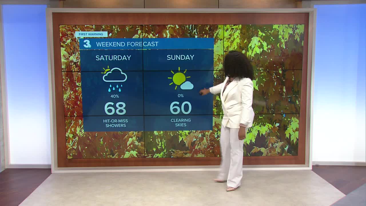 Sunday will be much cooler and brighter. Highs will struggle to reach 60 degrees. The sunshine lasts through Monday.