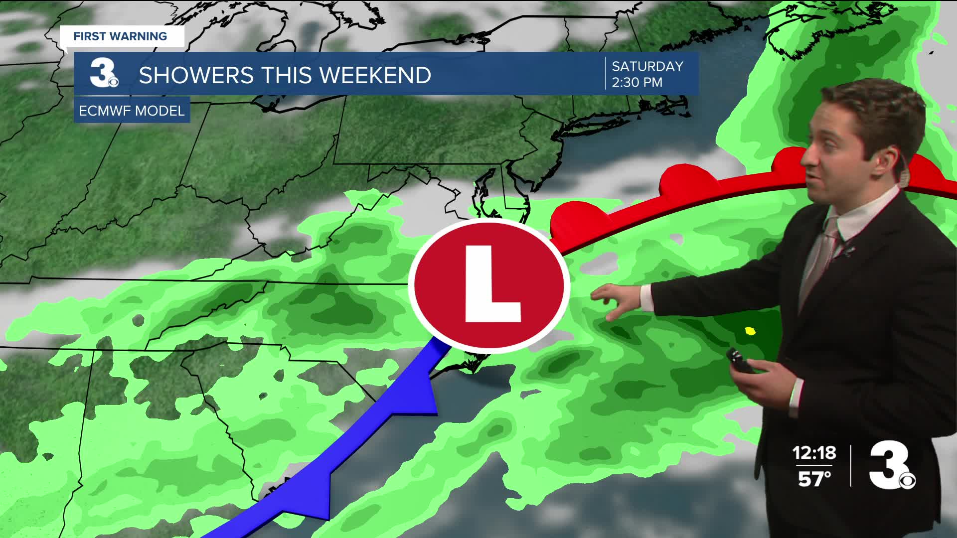 Friday will start off with cloudy skies, with occasional showers expected during the afternoon. High temperatures will reach the low to mid 60s, with winds out of the S at 5-10 mph. Occasional showers will continue overnight and into Saturday. Temperatures only drop into the 50s Friday night. On Saturday highs will reach the mid to upper 60s, with winds out of the S at 5-10 mph, turning out of the N at 10-15 mph during the afternoon. Showers will linger through the early afternoon on Saturday, with drier weather moving in after sunset (4:50 pm). The weather looks to be good for the Grand Illumination Parade, with clouds starting to clear out by the start of the parade.
