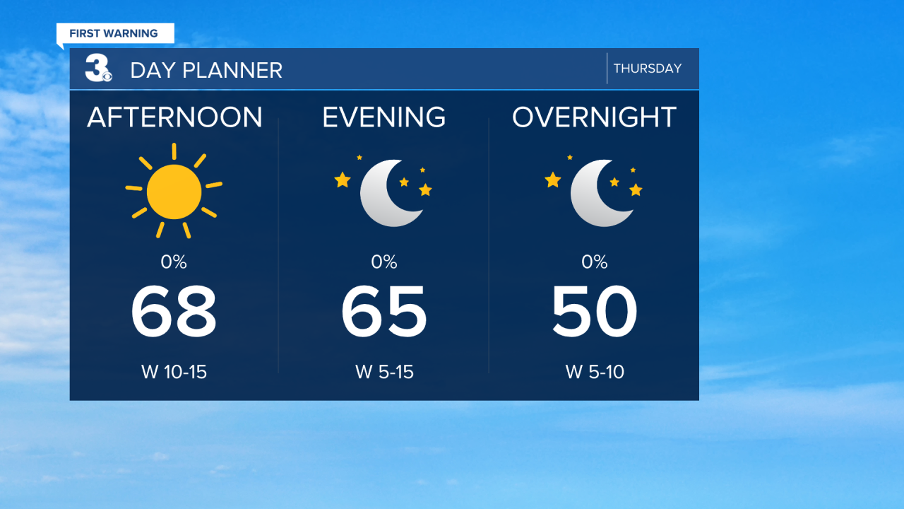 Friday will be another mostly sunny day with highs in the mid 60s. Temperatures gradually get cooler through early next week.